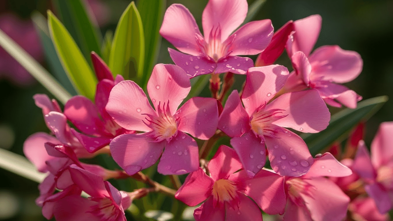 街路樹や公園、庭木として植えられていることが多いキョウチクトウ。ピンクや白の美しい花を咲かせますが、全草に強い毒があります。